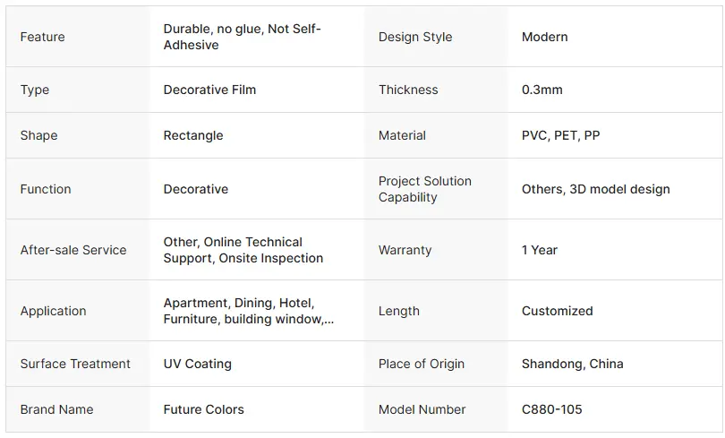 Nowoczesny folia blistra z litego koloru to dekoracyjny materiał filmowy, który wykorzystuje wysokocząsteczkowy plastik jako materiał podstawowy. Po zabarwieniu i obróbce powlekaniu osiąga przyczepność poprzez „proces pęcherza” (formowanie adsorpcji próżniowej). Zawiera „jednolity kolor, silną plastyczność i wysoką opłacalność” i jest szeroko stosowany w polach takich jak meble, dekoracja i opakowanie. Jest to jeden z powszechnie używanych materiałów w nowoczesnym stylu minimalistycznym.