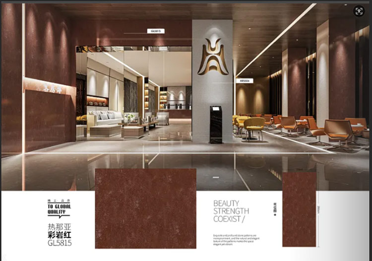 * Karmelowa czerwień: Głęboka czerwień z mahoniowymi i głębokimi fioletami, odpowiednia do tworzenia ekskluzywnej atmosfery komercyjnej, powszechnie spotykana w ekskluzywnych projektach przestrzeni komercyjnych;