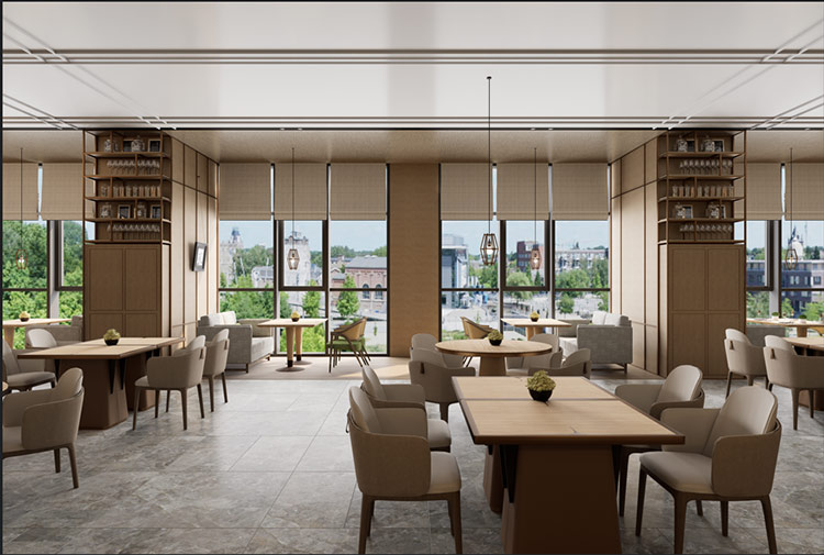 * Ciepłe, neutralne kolory: karmelizowane odcienie łączące czerwono-brązowy z nowoczesnością, odpowiednie do tworzenia nostalgicznego otoczenia komercyjnego.